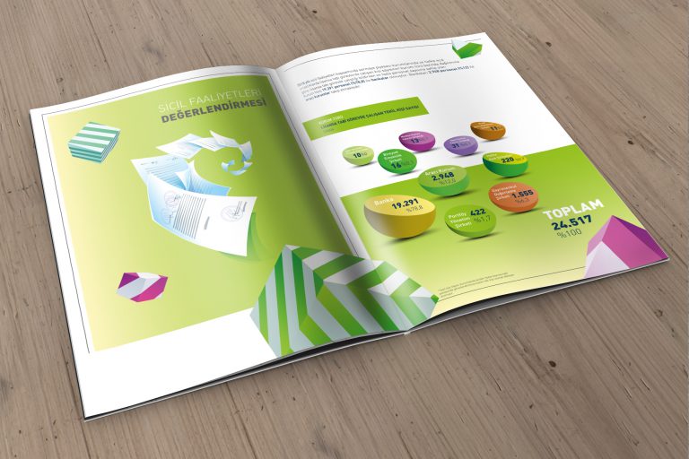 Her sene SPL’nin verdiği hizmetlerin sonuçlarını bir kitapçık altında topluyoruz ve her yılın tasarımı için farklı konseptler hazırlıyoruz. Bu seneki konseptimizde eğlenceli ve canlı geometrik