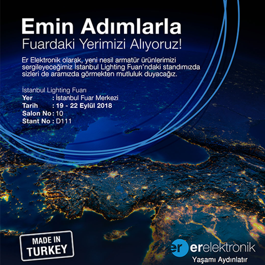 Bu sene 11’incisi düzenlenen uluslararası İstanbul Lighting Fuarına katılan markamız Er Elektronik için gösterdiği gelişimi ve hedeflerini yansıtan bir konsept çalışması hazırladık. Özellikle ülkemizin içerisinde bulunduğu ekonomik koşullar nedeni ile yerli üretimin ön plana çıktığı bu günlerde yerli marka olduğumuzun da altını çizdik. Katılımın oldukça yüksek olduğu fuarda Er Elektronik standı beklenenin üzerinde ilgi gördü.
