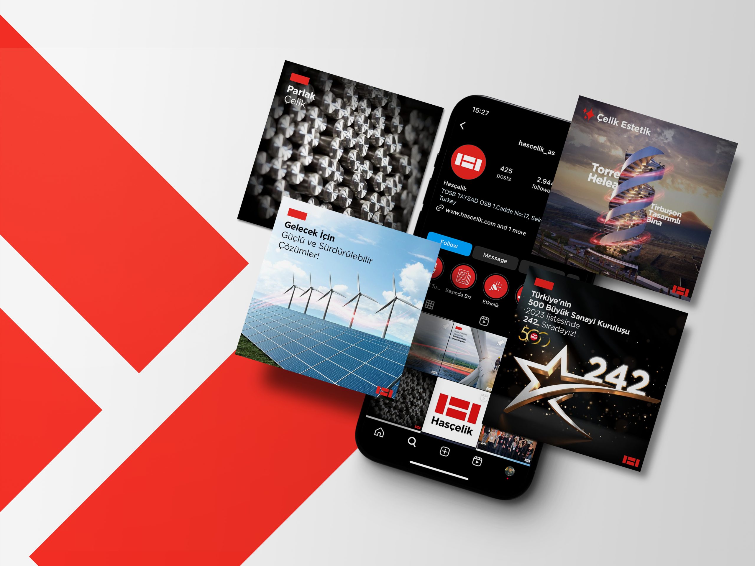 Hasçelik’in sosyal medya yönetimini, stratejik hedefler, sektörel bilgilendirme ve inovatif yaklaşımlar üzerine kurduğumuz statejilerle devam ettiriyoruz. Markamızın dijital dünyada görünür olma hedefi doğrultusunda, sosyal medyadaki varlığını daha da ileriye taşımaya devam edeceğiz.