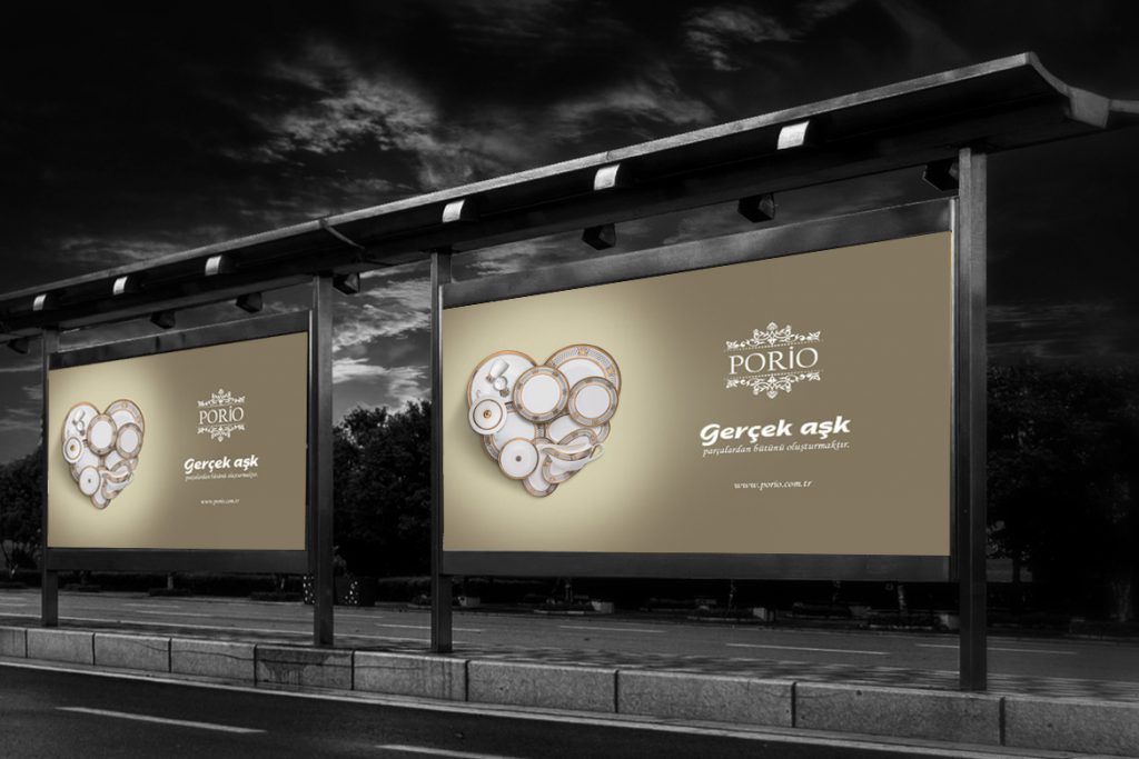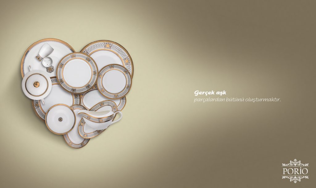 GoldMaster’ın markalarından olan Porio Porselen bizden ürünlerini tanıtırken kullanacağı yeni bir konsept istedi. Biz de özellikle çiftlerin ilgisini çekecek “Gerçek Aşk” konseptini yarattık. Gerçek Aşk konseptini katalog, ilan, billboard, mağaza içi branding ve fuar çalışmalarına uyguladık.